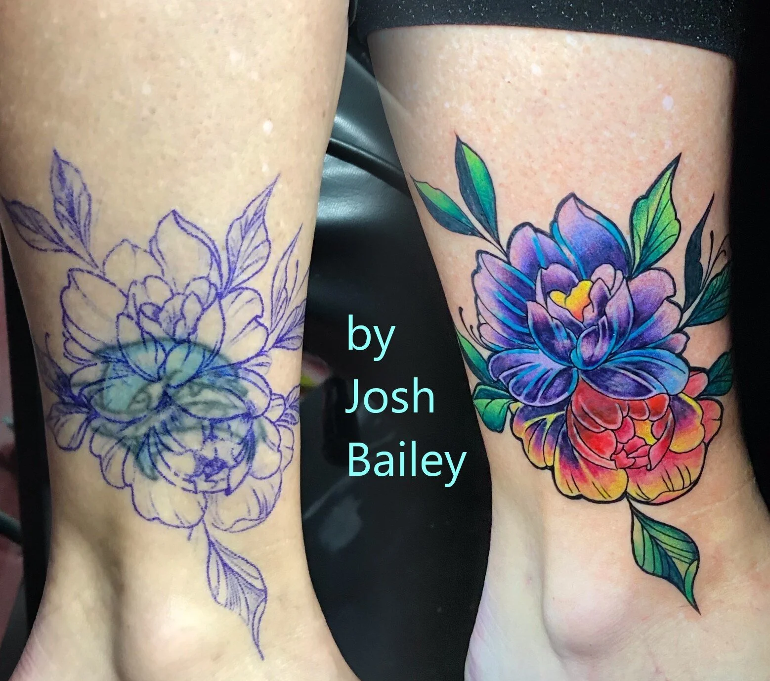 Adamnatonio Artist Adam Natonio Quality Tattoo Custom Tattoo Female Tattoos Feminine Leg Tattoos Ankle Tattoo Colorful Tattoos Colorful Floral Floral Tattoo Flower Tattoos Flower Cover Up Cover Up Tattoo Cover Art